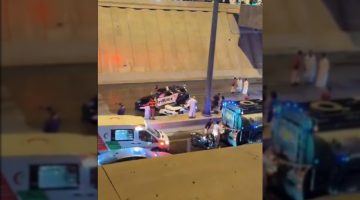 حادث مرعب يزلزل الرياض: سقوط دورية مرور من جسر واشتعالها فوق سيارة أخرى
