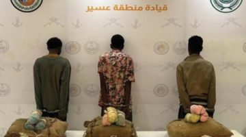 حرس الحدود في منطقة عسير يضبط 45 كيلوغراما من مخدر القات، مع اعتقال ثلاثة مهربين إثيوبيين.