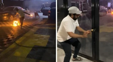 بالفيديو: مواطن بطل يحطم قفل متجر في الجبيل ويطفئ حريقًا قبل انتشاره نحو السيارات