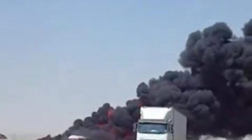 حريق يشعل شاحنتين ويؤدي إلى إغلاق طريق الساحل في جدة