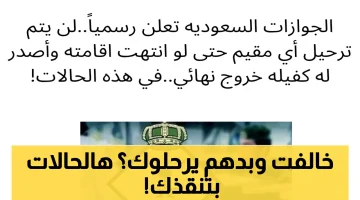 الجوازات السعودية تكشف: 3 حالات خاصة تحول دون ترحيل المقيم.. حتى بعد انتهاء إقامته وإصدار كفيل خروج نهائي! تعرفها الآن