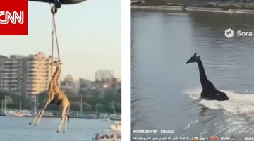 زرافة تتيه في نهر النيل في مصر وتنقذ بمروحية.. هل الفيديو هذا حقيقي حقاً؟