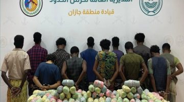 القبض على 12 شخصًا من جنسيات إثيوبية ويمنية وإريترية بتهمة تهريب 198 كجم من القات المخدر.