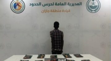 حرس الحدود في جازان يلقون القبض على إثيوبي محتجزًا كميات من الحشيش.