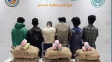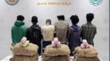 حرس الحدود بمنطقة عسير يقبض على ستة إثيوبيين متورطين في تهريب 90 كيلوغرامًا من القات المخدر.