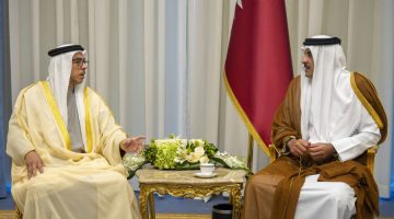 لقاء منصور بن زايد وأمير قطر على هامش قمة شرم الشيخ للسلام